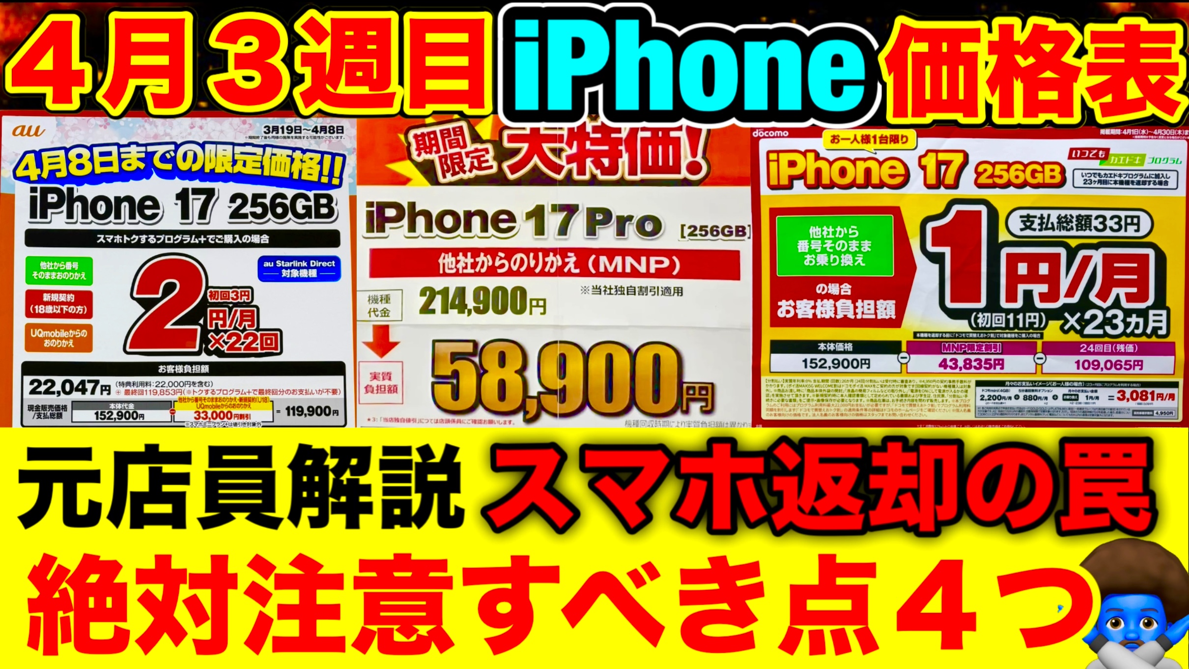 「また改悪か。22,000円も取られるなら、もうキャリアなんか信用できない」「じゃあApple公式で一括で買うわ。2年返却なんか絶対使わない!」 その判断、2年間でさらに約33,000円を失います。 この記事でわかること+ iPhone17「22,000円負担」感情で動くともっと損する理由 「Appleで一括購入→メルカリで売却」は本当に得?【実調査】 3パターン徹底比較表|Apple・ahamo一括・ahamo返却の実質負担 ahamoの2年返却が「最強の逃げ道」になる本当の理由 ahamoを選ぶと、 ...