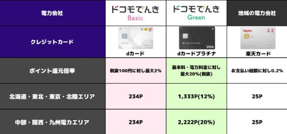 このように、同じ電気の使い方でもプランと支払い方法の組み合わせ次第で、毎月dポイントがかなり還元されます。