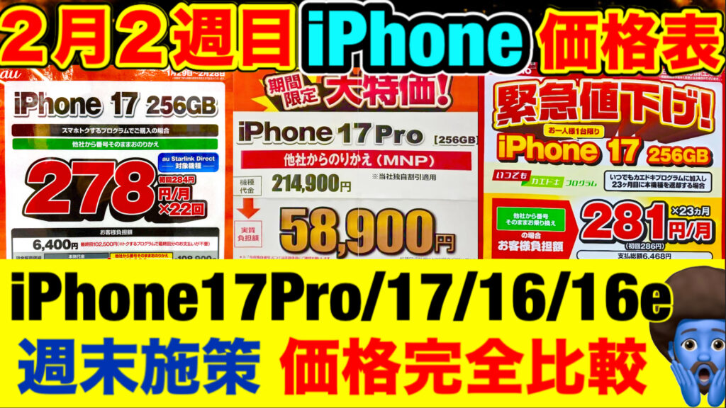 ⬇️iPhone 17 Pro(256GB)価格比較表