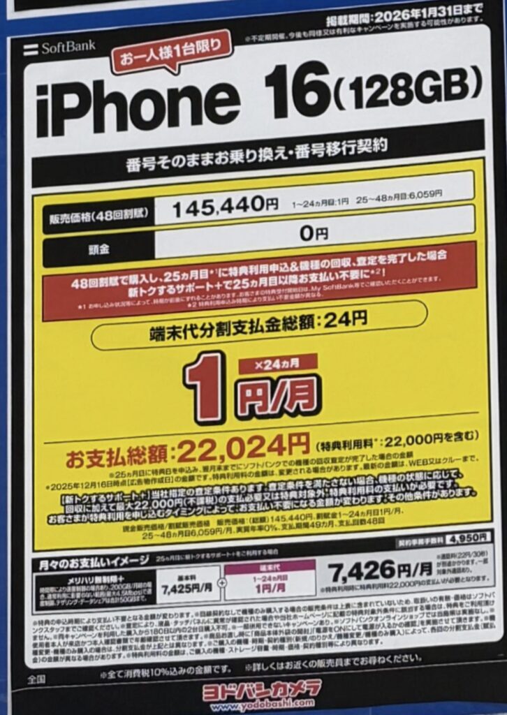 2026年1月現在、iPhoneをとにかく安く手に入れたいならiPhone16が圧倒的にお得。
