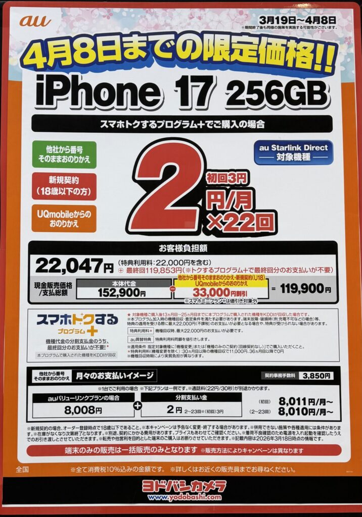 | au (iPhone17 256GB) | 料金・条件 |