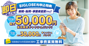 | UQモバイル | ![]() BIGLOBE光 ネクスト | 40,000円 | 55,000円 | 【代理店NEXT限定】 高額キャッシュバック 最短翌月に現金振込。 |