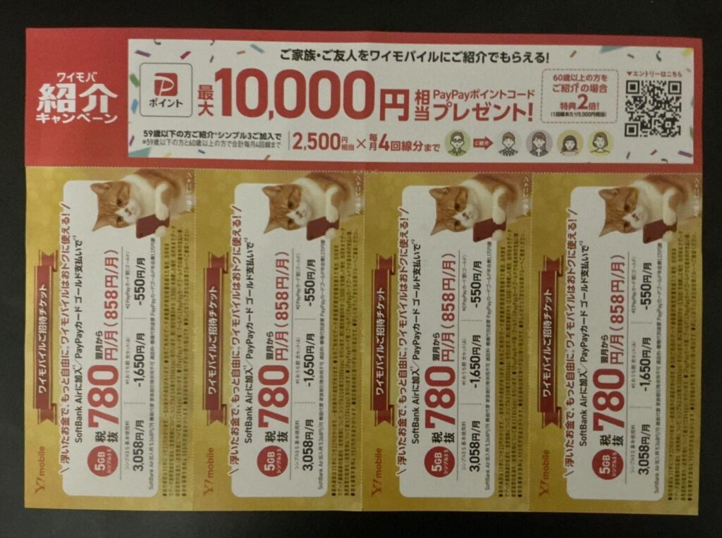 | 紹介方法 | ワイモバイル紹介キャンペーンページからエントリー。 紹介した方の電話番号等が必要 |
