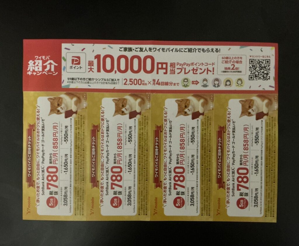 家族や友人にワイモバイルユーザーがいれば紹介コードを貰いましょう。