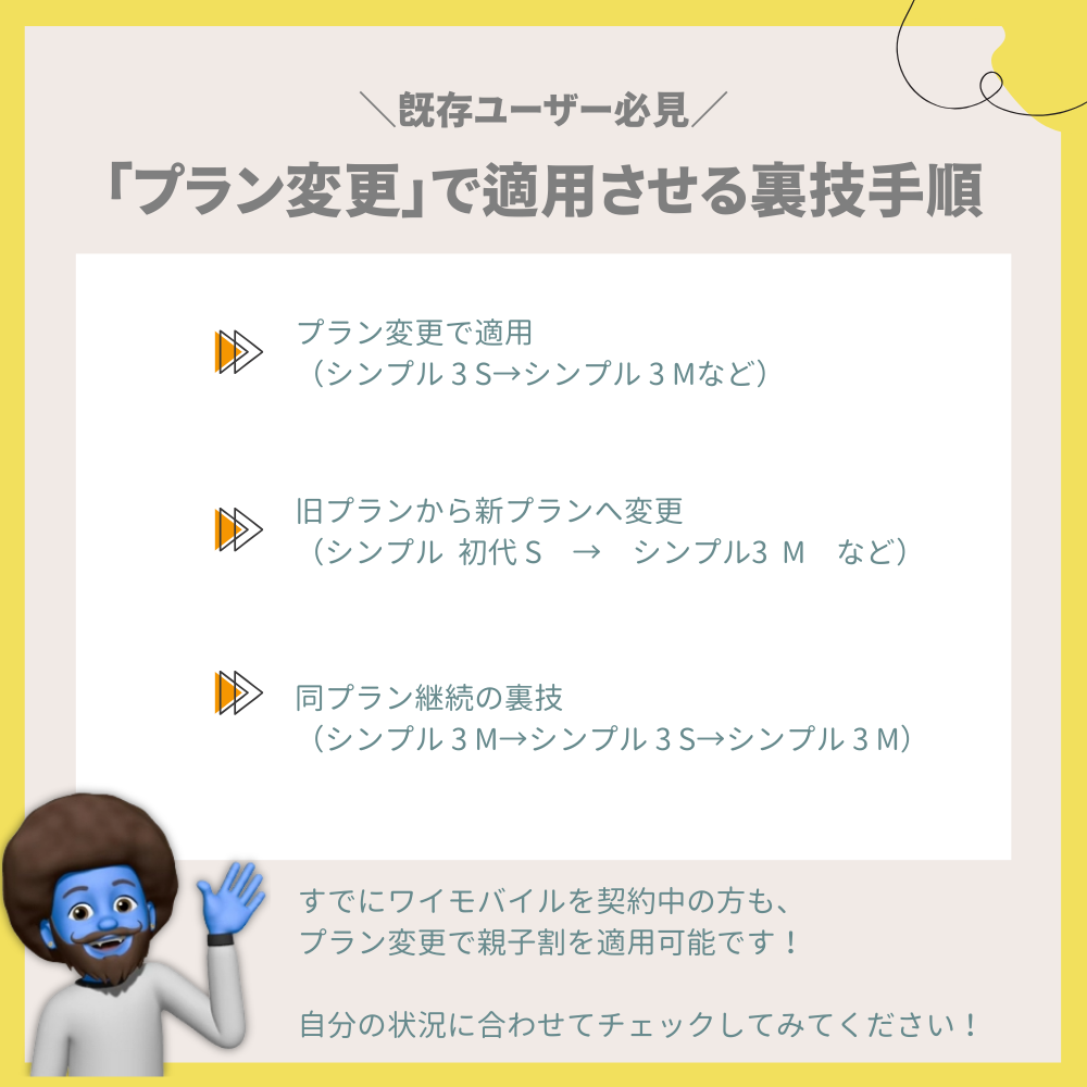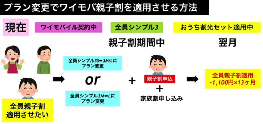 すでにワイモバイルを契約中の方も、プラン変更で親子割を適用可能です。