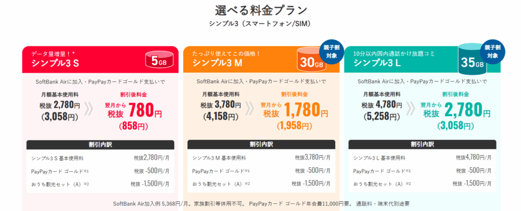 プラン名は「シンプル3」ですが、その内容は以前よりも複雑化しており、「シンプル」とは程遠くなってしまいました。